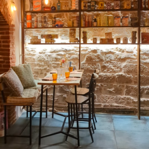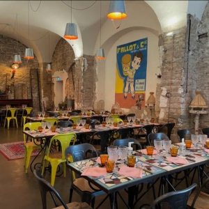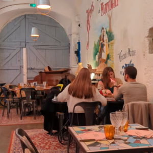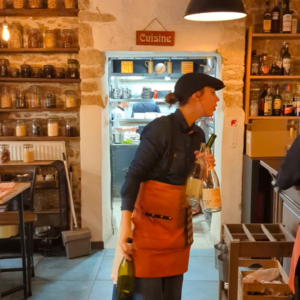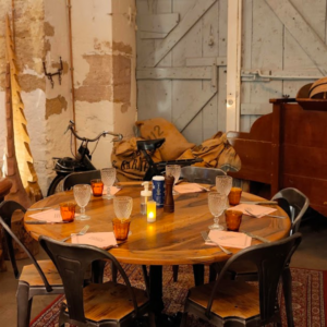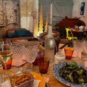 Dès mon arrivée, j'ai été charmé par l'ambiance chaleureuse et pittoresque de cet établissement. Les différentes salles, telles que les caveaux, l'épicerie et la grange, offrent un décor qui semble tout droit sorti d'une autre époque. L'attention portée aux détails, avec des étagères garnies de vieux produits d'épicerie et un mobilier rustique, m'a transporté instantanément dans un village français d'avant-guerre.